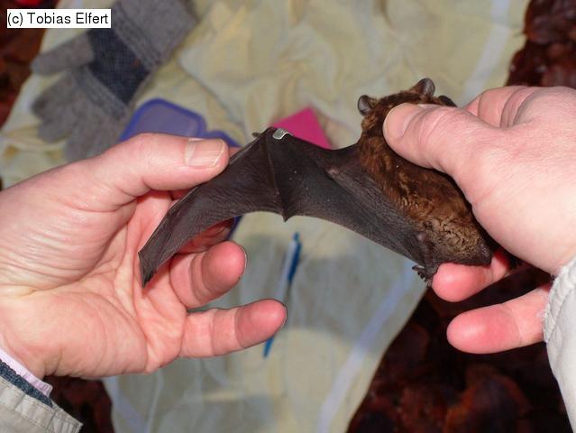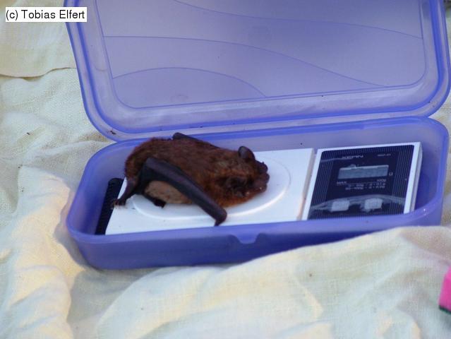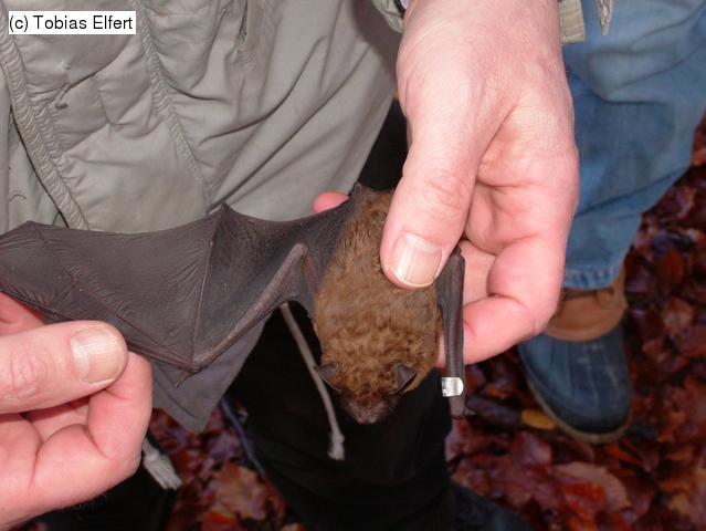 Nov. 2004 einem Abendseglerweibchen ein Sender aufgeklebt.